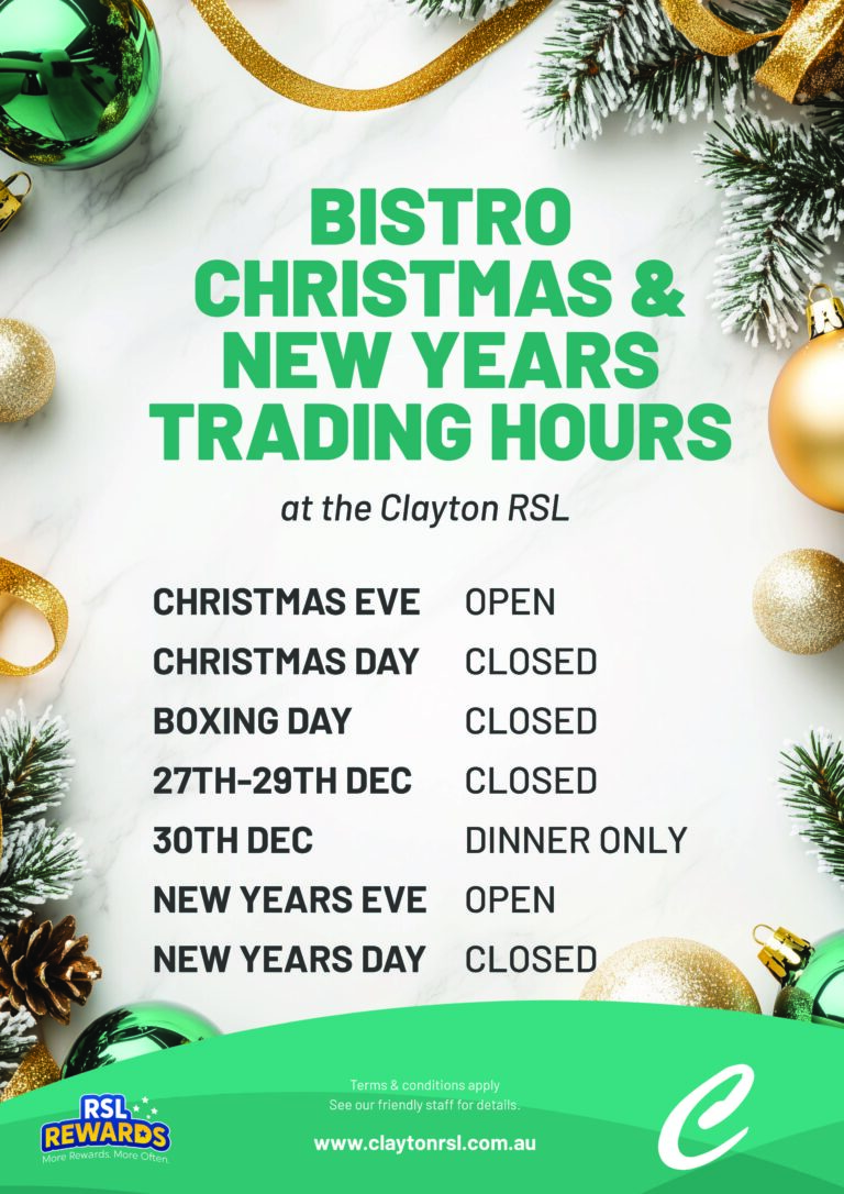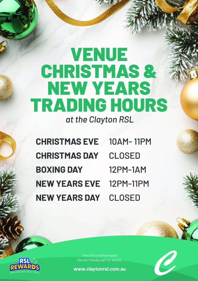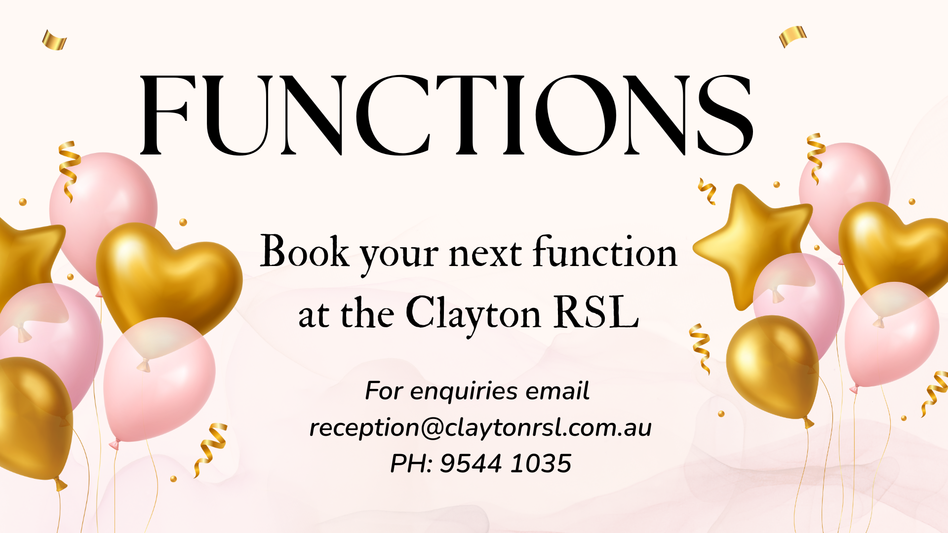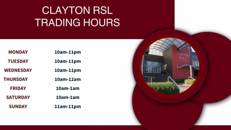 There’s always something happening at Clayton RSL! Explore our upcoming events, member activities, dining specials, and entertainment. Whether you’re here for a meal, a night out, or a community event, we look forward to welcoming you.