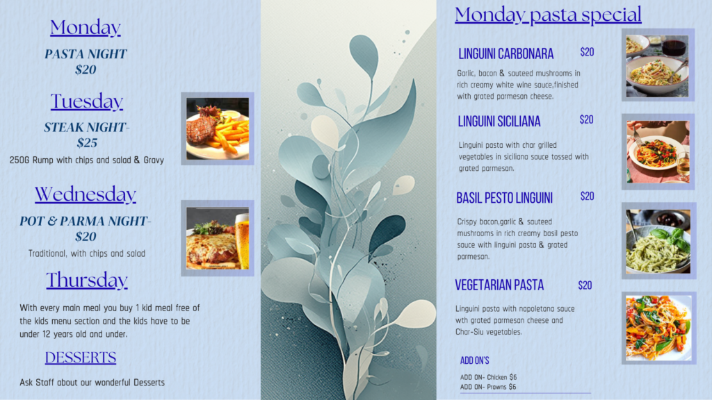 Monday – Pasta Night | $20