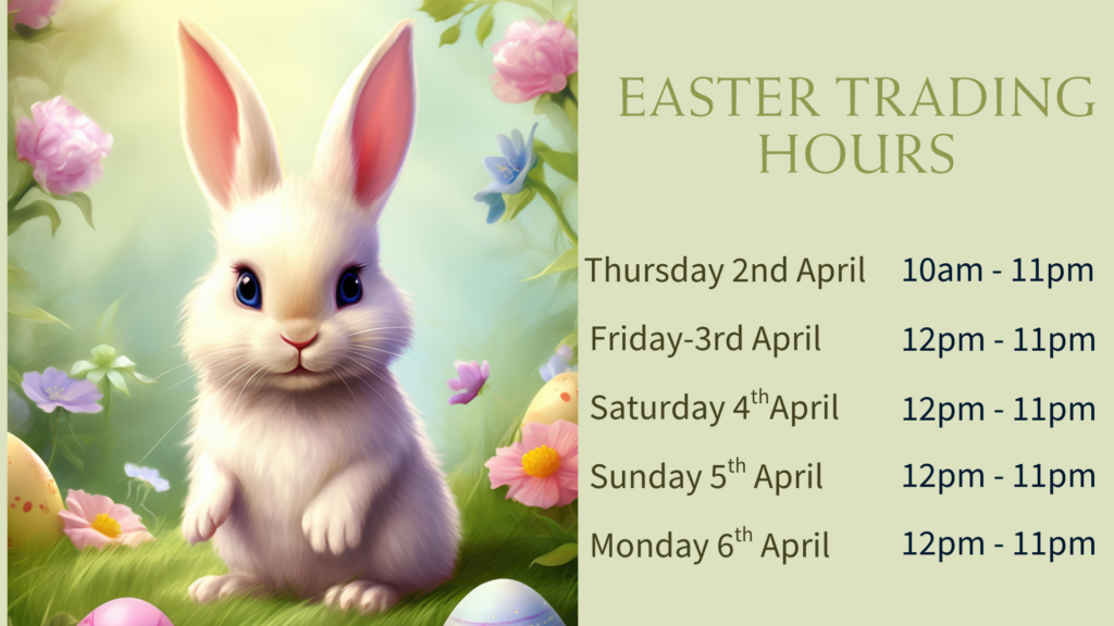 Easter Monday: 12:00pm – 11:00pm